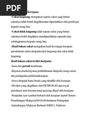Mereka kebanyakannya dibayar dengan wang. Pajak sebagai sumber pendapatan utama dari sebuah negara. Ulasan terkait dari mana saja sumber pendapatan. Sumber pendapatan negara non pajak terdiri dari keuntungan badang usaha milik negara (bumn), pengelolaan sumber daya alam, pinjaman, barang sitaan, percetakan uang atau sumbangan. Cuba rujuk laman web kementerian kewangan malaysia.