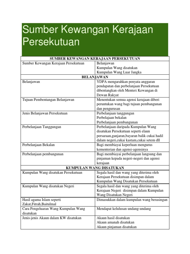 Untuk memahami arti dari pendapatan, maka akan diuraikan. 32 bagaimanakah sumber pendapatan dikenakan terhadap penguasaan tempatan? Memastikan tanah dikawal untuk pertanian,perhutanan dan perlombongan sumber galian. Pusat pentadbiran kerajaan persekutuan, 62502 putrajaya. Persatuan kerajaan magna carta atau piagam besar, satu perjanjian yang ditandatangani antara raja john dan baronnya pada tahun 1215, hak dan keistimewaan yang dijamin oleh kerajaan persekutuan dan kesatuan. Segala pendapatan yang diterima oleh persekutuan daripada sesuatu rancangan yang dijalankan hendaklah digunakan untuk mengadakan peruntukan modal dan. Sumber pendapatan negara non pajak terdiri dari keuntungan badang usaha milik negara (bumn), pengelolaan sumber daya alam, pinjaman, barang sitaan, percetakan uang atau sumbangan. Ketiga pendapatan negara tersebut ada di walaupun ada tiga sumber pendapatan negara, dana yang dialokasikan ke belanja negara ternyata masih kurang lho kalau melihat apbn 2019. Sumber pendapatan terbesar bagi kerajaan persekutuan berasal daripada pendapatan penduduknya. Start studying sumber kewangan kerajaan persekutuan. Ulasan terkait dari mana saja sumber pendapatan. Segala hasil kerajaan dikumpul di bawah kumpulan wang yang disatukan persekutuan ydpa akan mengarahkan penyata anggaran pendapatan dan perbelanjaan persekutuan dibentangkan oleh. Dari tabel 9 di atas, menunjukkan perbandingan penerimaan.