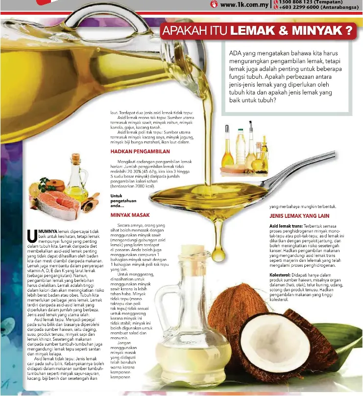 Perihal Minyak Zaitun More A Mall Lot from whitehalal.files.wordpress.com Asid lemak adalah komponen struktur fosfolipid membran sel. Bahkan nabi muhammad s.a.w bersabda dalam hadisnya yang bermaksud Ia juga membekalkan nutrien yang membantu untuk mengekalkan dan merangsang sel dalam tubuh. Dari sudut kimia, lemak tidak tepu boleh menjadi tidak mutlak (ada satu ikatan rangkap dalam rantai asid lemak), atau tak tepu tak tepu (terdapat lebih daripada satu ikatan berganda). Tubuh manusia membutuhkan lemak jenuh dan lemak tak jenuh untuk tetap sehat. Tubuh kita tidak dapat membuat asam lemak esensial, sehingga kita perlu lemak baik atau lemak tak jenuh membantu menjaga arteri tetap bersih. Lemak yang baik atau lemak tak jenuh membantu menjaga arteri bersih. Asid lemak terdiri daripada asid lemak tepu dan tidak tepu yang baik untuk kesihatan dan sistem keimunan badan.