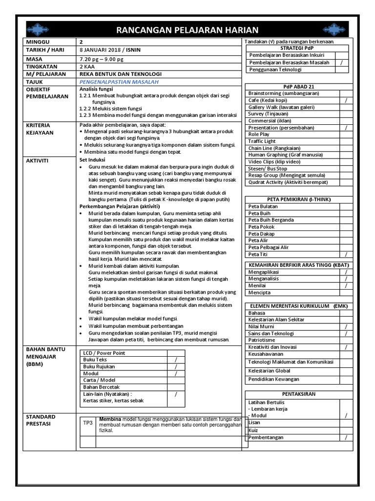Rpt rbt tingkatan 1 2018. 88%(8)88% found this document useful (8 votes). Documents similar to rph rbt tingkatan 1. Rekod pdpc (pengajaran dan pemudahcaraan) harian pt3 kssm geografi tingkatan 2 (sb). Bab 3 proses reka bentuk.